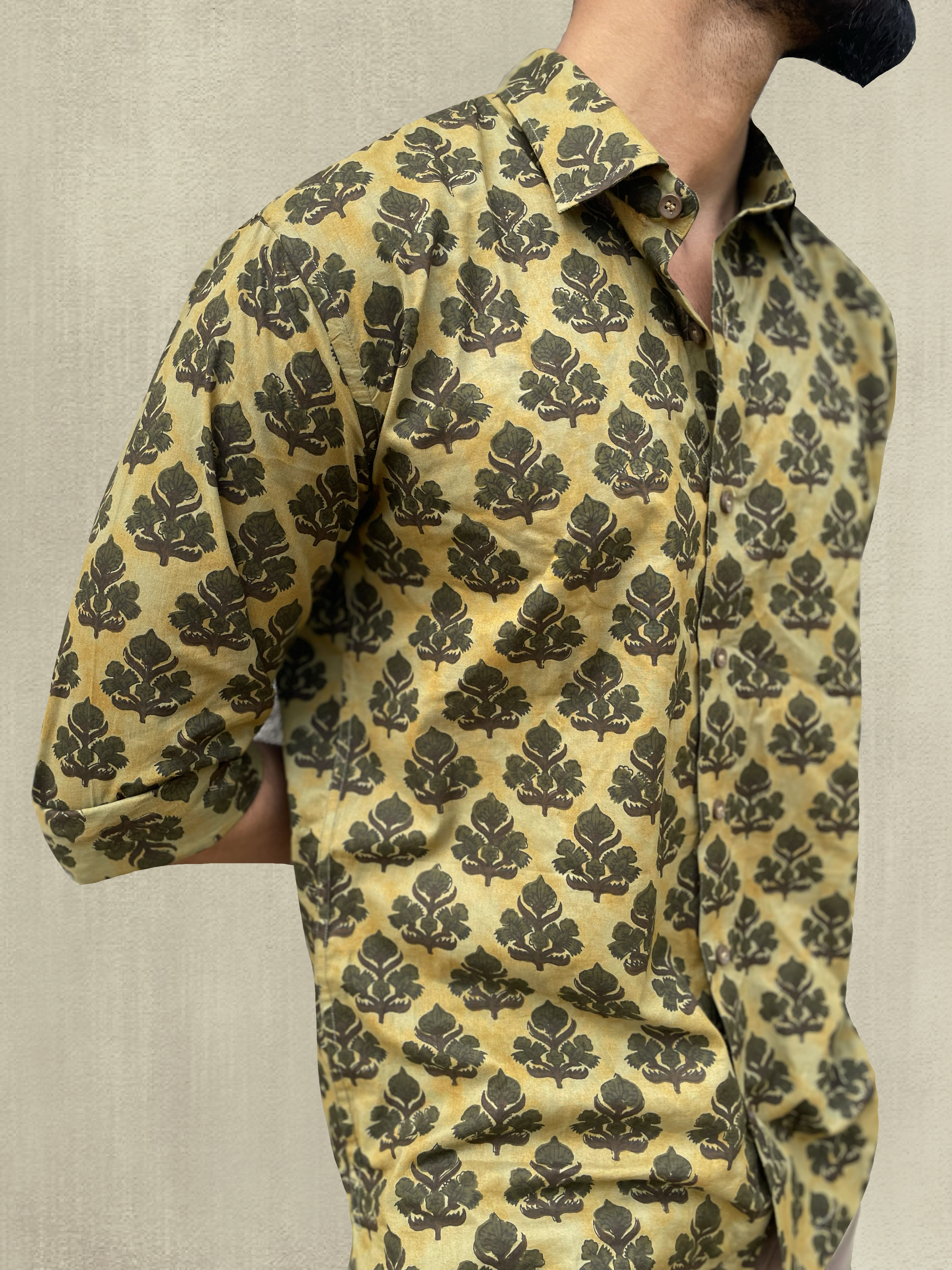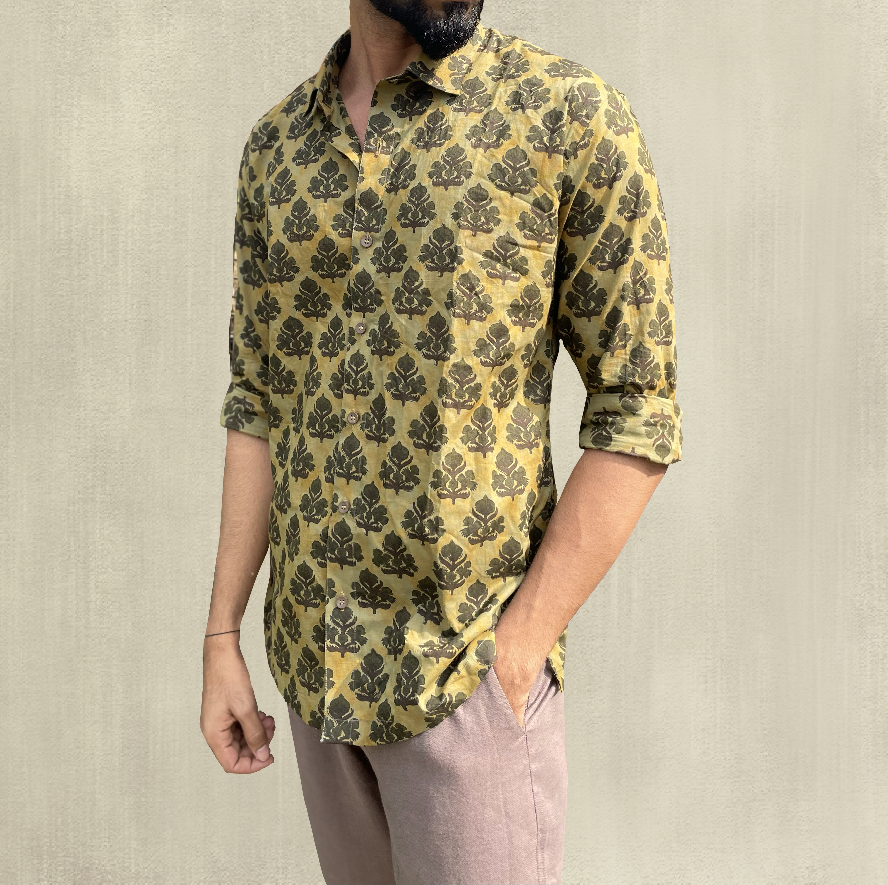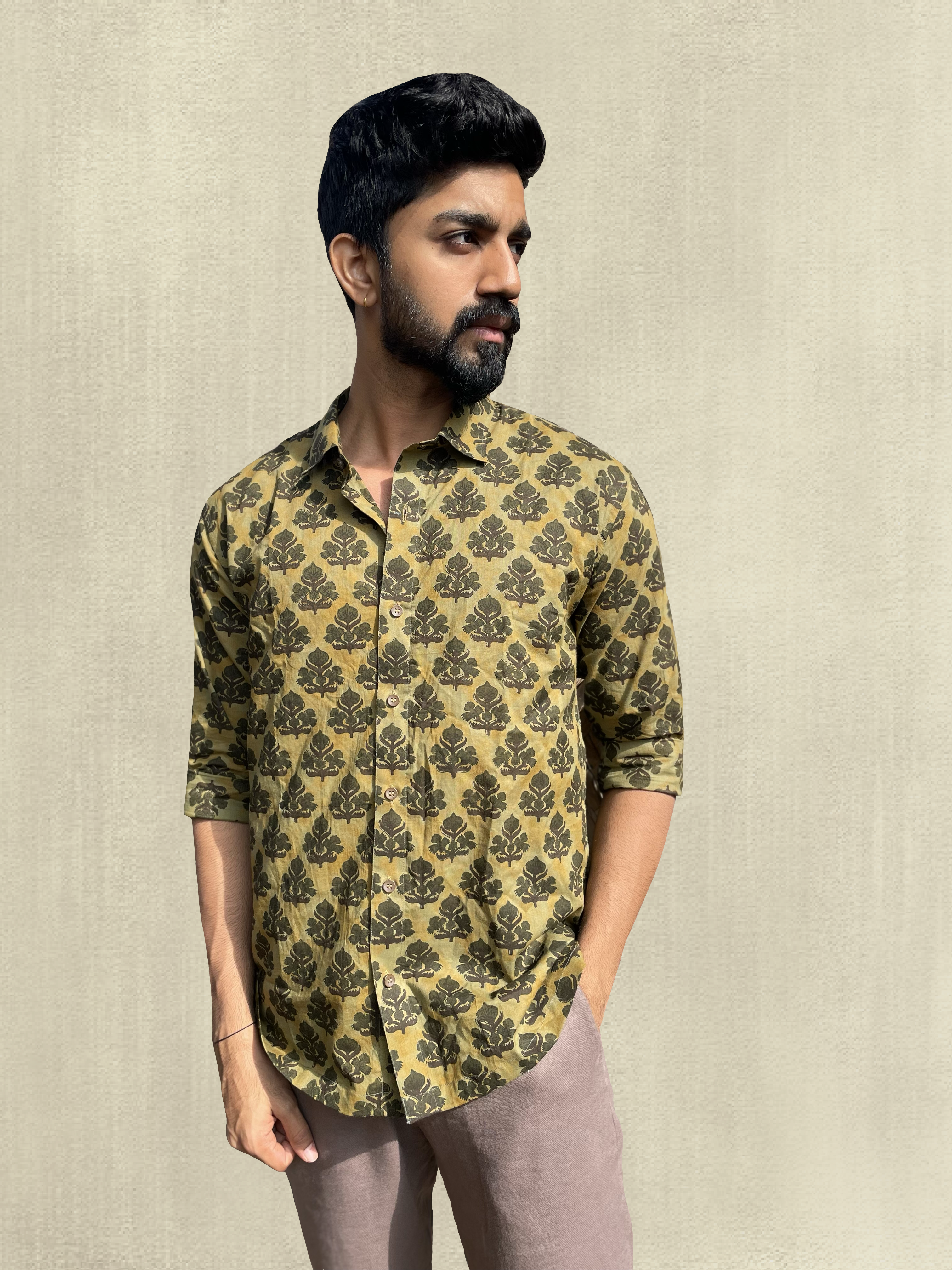 This unique shirt unleashes your inner style maverick. The shirt captures the essence of nature’s beauty with its enchanting colour and intricate block print design. Its relaxed fit and soft fabric ensures you feel at ease throughout the day, no matter the occasion. The soothing green hue exudes a sense of serenity and individuality, whether you’re going for a casual day out or looking to make an impression at a special event, our Algae Green Block Print Shirt adds an element of artistry to your wardrobe.