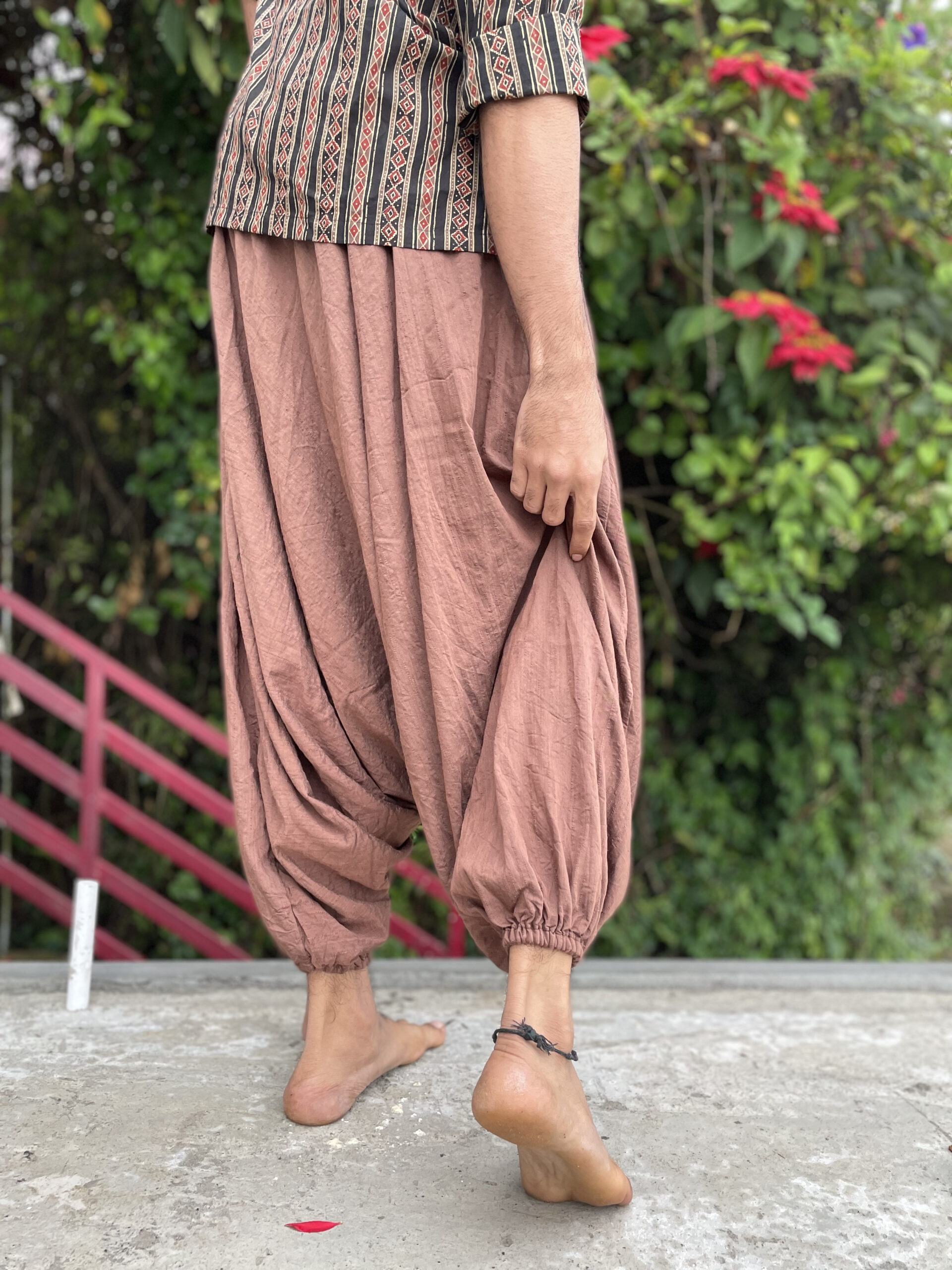 Upgrade your wardrobe with our Bronze Unisex Harem Pants and experience the perfect blend of comfort and style. These harem pants are tailored to suit all genders, offering a relaxed fit and effortless style for everyone. Provides exceptional comfort and breathability, perfect for all-day wear. Featuring an elastic waistband and spacious pockets, our harem pants blend practicality with fashion, ensuring you stay comfortable and organized throughout the day. Can be worn season after season occasion after occasion without looking outdated.